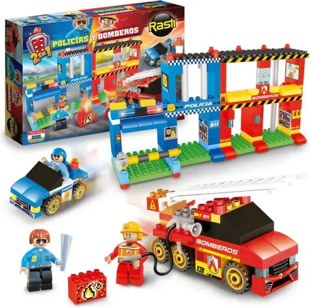 Lanzamos un pack donde podrás armar la Estación de Bomberos y la de Policías, como asi también 2 de los mejores vehículos: el autobomba y el patrullero de Policía. Contiene también dos personajes y accesorios. Contenido: