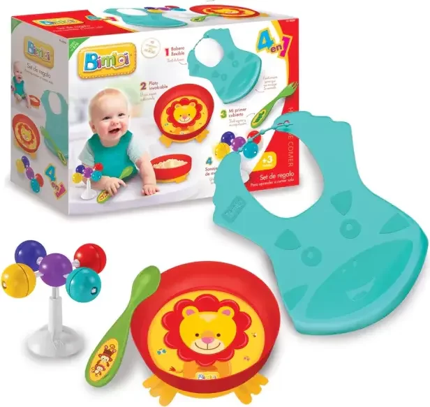 Con el nuevo Set de Regalo Bimbi "Hora de Comer" queremos ayudarte a estimular a tu bebé a que se anime a comer solo. La base antideslizante del plato ayudará a darle confianza para intentarlo una y otra vez evitando el deslizamiento del plato. El babero lavable le dará libertad para explorar y divertirse mientras se alimenta en familia. El Sonajero de Mesa estimulará al niño a relacionar la hora de comer con una actividad lúdica y divertida.