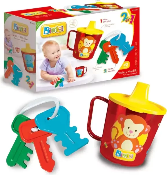Con el nuevo Set 2 en 1 Bimbi "Hora de Comer" queremos ayudarte a estimular a tu bebé a que se anime a comer y tomar solo. Acompañá a tu bebé en la transición mamadera, vaso con pico y taza. La llave mordillo estimulará la prensión y el traslado de objetos de una mano a la otra. Esto favorecerá la coordinación ojo mano.