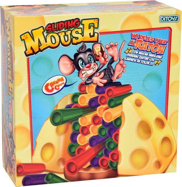 Con Mucha Habilidad Deberás Quitar Los Cilindros De Color !! No Dejes Caer Al Ratón….. Utiliza 3 Baterías Ag3 (lr41) Contenido: 1 Ratón 2 Laterales De Queso 1 Base 1 Ruleta De Colores 1 Hoja Instructivo 48 Cilindros En 4 Colores (12 Rojos- 12 Amarillos- 12 Verdes- 12 Violetas) Medida De La Caja: 26 X 25.5 X 11 Cm Aprox