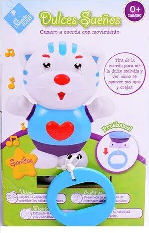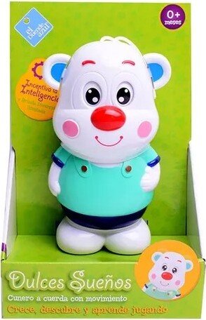 Dulce Sueños cunero a cuerda con movimiento. Tira de la cuerda para oír la dulce melodía y ver como se mueven sus ojos y orejas. Medida: 8cm Ancho X 14cm Alto X 6cm Profundidad.