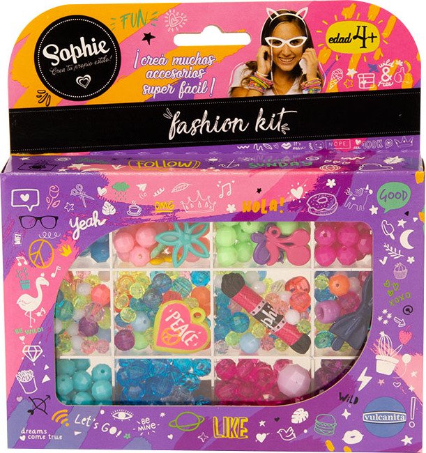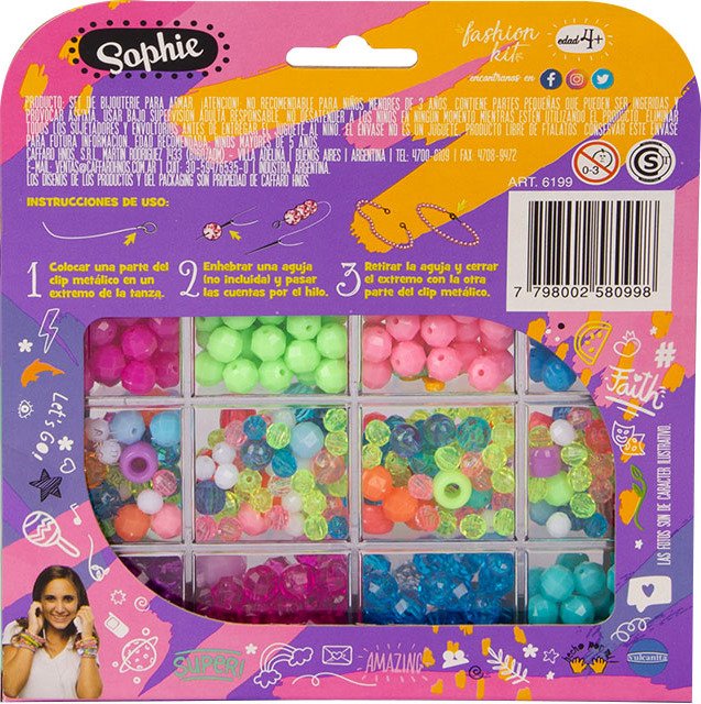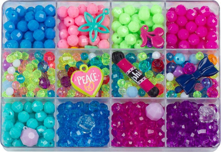 Bijouterie para armar en caja cristal Mostacillas y dijes surtidos 9 divisiones Nº2. Edad recomendada desde 5 años. Peso: 4.598 kg Dimensiones: 40 × 20 × 20 cm