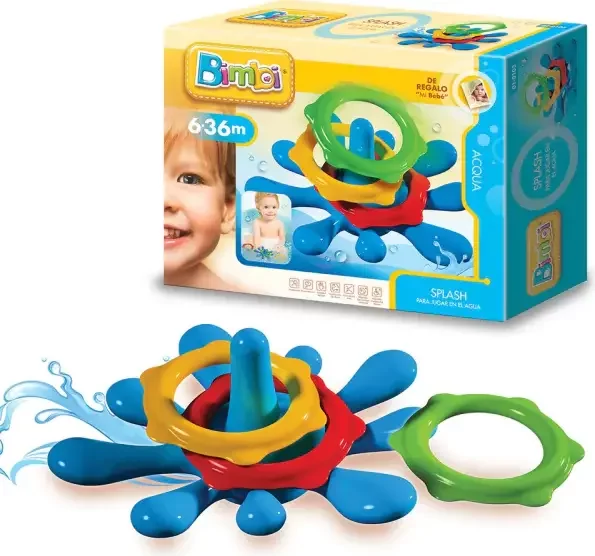 Juguete para el agua con 3 aritos para tirar y embocar. Con el Splash Bimbi el niño estimula su destreza manual, también la coordinación ojo-mano, y el desarrollo de habilidades relacionadas con el planeamiento motor. Favorece el desarrollo de las prensiones por sus diferentes tamaños. Plantea desafíos por lo tanto promueve el ensayo-error y la tolerancia durante la actividad. Favorece la manipulación y conocimiento de distintos cuerpos estimulando el concepto de la tridimensionalidad. Incentiva la motricidad cada vez que el niño intenta embocar los aros en el Splash Bimbi.