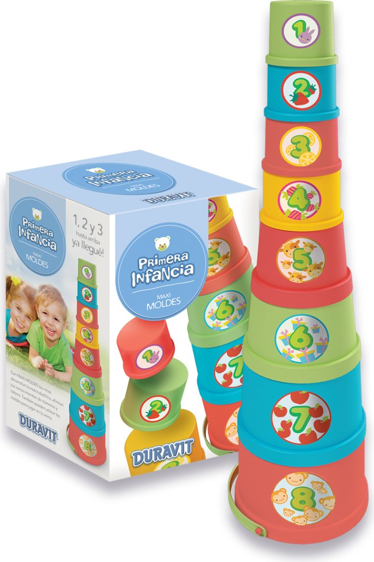 Juego didáctico Torre de baldes apilable Duravit para la primera infancia.