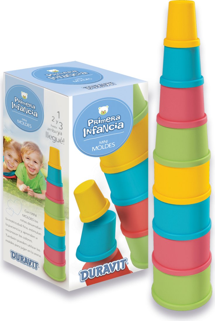 Juego didáctico Torre de baldes apilable Duravit mini para la primera infancia.