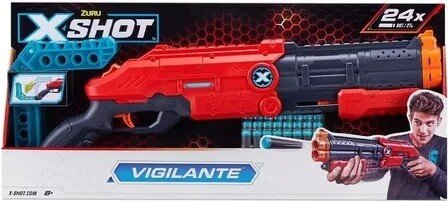 ¡Con un mango de acción de bomba y un mecanismo de disparo rápido, X-Shot Vigilante lleva la voladura al siguiente nivel! ¡Rompe el cañón para recargar y destruir a tus oponentes en tu día de justiciero!